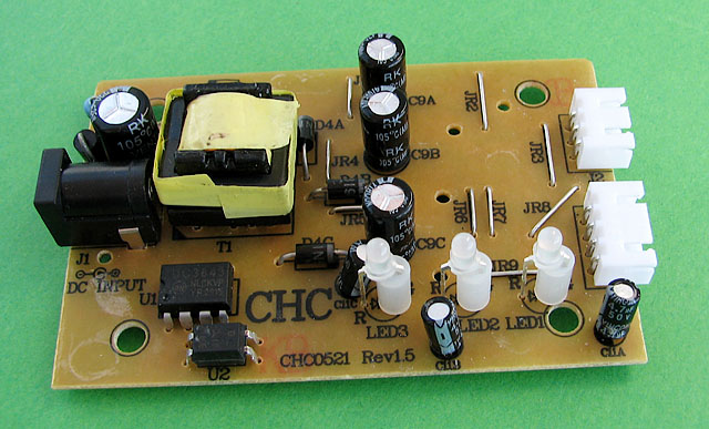 Pro nabíjení akumulátoru jsem zvolil nabíječku TURNIGY 5011 ze stejného e-shopu (http://www.hobbycity.com/hobbyking/store/uh_viewItem.asp?idProduct=6507&Product_Name=Turnigy_2-3_Cell_Lipoly_Balance/Charger). Stojí necelých 6 dolarů a za tuto cenu se nevyplatí nabíječku vyrábět. Nabíjecí proud nemůže být nikdy na štítku uváděných 1,2 A, spíše je to součet proudů do všech článků :-)). Nabíječka je vlastně měnič se třemi sekundárními vinutími. Na každé vinutí je zapojený usměrňovač a samostatný nabíječ pro jeden článek. Každý článek se tedy nabíjí samostatně, není to tedy jeden nabíječ s balancerem (chybný údaj u prodejce). Baterie se nabíjí přes servisní konektor, na kterém je každý článek vyveden. Obvod řídící nabíjení (na desce je 3x) jsem s velkou pravděpodobností identifikoval jako STC4054 od firmySTMicroelectronics, zapojení okolních součástek tomu nasvědčuje. Na pouzdru obvodu je kód H1II, v katalogovém listu obvodu SMD kód bohužel uveden není. Nabíjecí proud je asi 500 mA a je pro tuto malo baterii zbytečně velký, i když podle výrobce lze nabíjet proudem až 2C. Nabíjecí proud zmenšíte výměnou rezistorů R14a. R14b a R14c. Zvětšíte-li odpor na 5,6k, bude nabíjecí proud asi 180 mA, což je pro tyto malé akumulátory rozhodně vhodnější. Budete-li chtít nabíječku používat i pro jiné akumulátory, nezapomeňte si objednat i "prodlužovací" kablíky, je na nich zásuvka i zástrčka. Použité konektory se u nás dají sehnat jen v modelářských prodejnách a za podstatně vyšší cenu. Kablík pro dvoučlánkovou baterii http://www.hobbycity.com/hobbyking/store/uh_viewItem.asp?idProduct=9735&Product_Name=JST-XH_2S_Wire_Extension_20cm_(10pcs/bag) a pro tříčlánkovou http://www.hobbycity.com/hobbyking/store/uh_viewItem.asp?idProduct=9736&Product_Name=JST-XH_3S_Wire_Extension_20cm_(10pcs/bag). Pokud jste modeláři, přijdete si na e-shopu Hobby King na své.