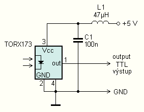 Obr. 5. Převodník z TTL na optický kabel (TOSLINK)