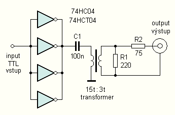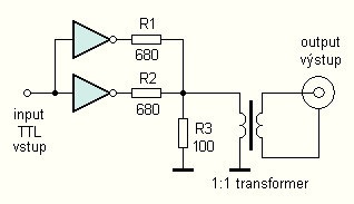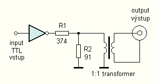 Obr. 6. Galvanicky izolovaný převodník z TTL na koaxiální