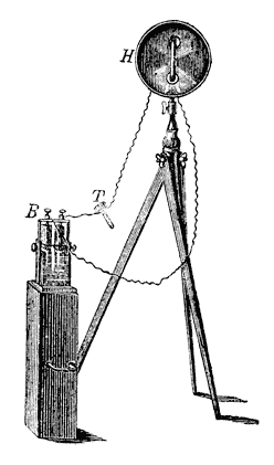 Z pokusů Bella a Taintera uvádíme jeden z nejzajímavějších. Na věži školní budovy Franklinovy ve Washingtonu postaven byl přístroj odesílací (obr. 2.) a v laboratoři Bellově, kteráž se nacházela v domě, 213 m od zmíněné věže vzdáleném, byl umístěn přístroj reprodukující (obr. 3.). Tainter se nalézal na stanici odesílací, kdežto Bell naslouchal ve své laboratoři. Však stůjtež zde vlastní jeho slova: „Když jsem dal telefon k uchu, slyšel jsem jasně slova: „Pane Belle, slyšíte-li co pravím, přistupte k oknu a zamávejte kloboukem““. — Není nám známo, došel-li vynález tento, po stránce vědecké tak zajímavý, použití někde již v životě praktickém; ale o jeho ceně i po této stránce pochybovati nelze. Na místo telegrafů optických, jichž se ve válce užívá, mohlo by fotofonu býti užito, a zajisté i na místech jiných.
