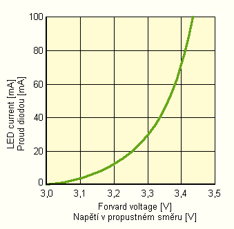 Obr. 2. Voltampérová charakteristika bílé LED se jmenovitým proudem 30 mA