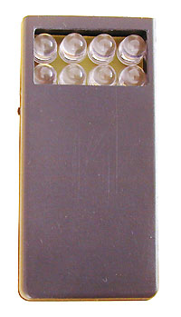 Svítilnu jsem vestavěl do krabičky KP-DO1, kterou jsem zkrátil asi na 10,5 cm. Vzniklý otvor zaslepíme víčkem, které zhotovíme z odříznutého zbytku krabičky. Víčko přilepíme ke spodnímu dílu krabičky modelářským lepidlem na plastové modely (na polystyrén). Do vrchního dílu krabičky je třeba vyříznout díru nad LED. Vzhledem k velké směrovosti vyzařovaného světla stačí, aby měl rozměry odpovídající ploše, kterou zabírají LED na desce. V krabičce je třeba odstranit všechny výstupky a přepážky kromě sloupku, kterým jsou spojeny oba díly krabičky. Do krabičky se pohodlně vejdou tři články velikosti AA („tužková baterie“). Krabička je však příliš úzká, aby se do ní vešel standardní držák. Nejlepší je použít akumulátorový „pack“ s drátovými vývody. Ten buď koupíme hotový jako náhradní díl k bezšňůrovým telefonům, nebo si jej sestavíme sami.