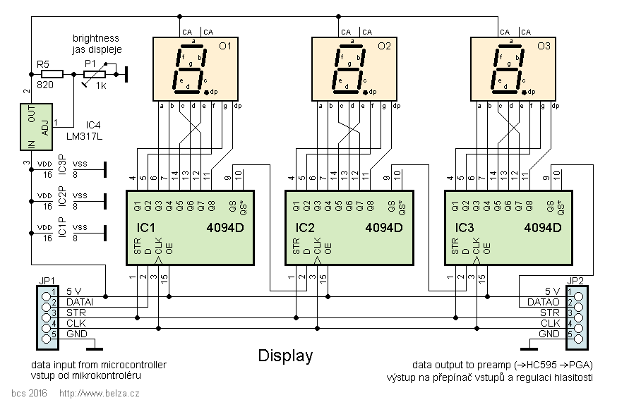 Obr. 5. Třímístný displej k řídicímu obvodu DO2 z obr. 3