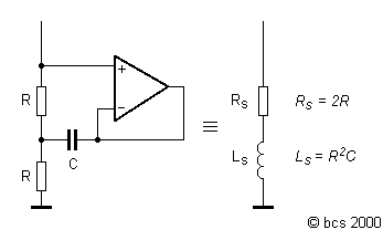 V ekvalizéru jsou použity syntetické idukčnosti. K jejich realizaci jsou použity tzv. gyrátory. Gyrátor je obvod (nebo součástka), který transformuje jednu impedanci v jinou - např. kapacitu na indukčnost, odpor na kapacitu apod. Nejčastější aplikací gyrátoru je právě syntetická indukčnost. V ekvalizéru je použit Prescottův syntetický induktor, což je jeden z nejjednodušších gyrátorů. Skládá se ze dvou rezistorů, kondenzátoru a zdroje napětí řízeného napětím - napěťového sledovače. Zapojení induktoru je na obr. 1. Tento gyrátor má poměrně velký sériový odpor Rs. To způsobuje, že induktor (a tím i případný rezonanční obvod) má malou jakost. V uvedeném ekvalizéru je jakost induktoru dostatečná. Pro vícepásmový ekvalizér (např. 10pásmový) by bylo třeba použít jiný typ gyrátoru. Několik dalších možných zapojení gyrátorů naleznete v Konstrukční elektronice 3/1996 na straně 89 až 90.