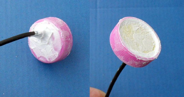 mezikroužkem vlepen do víčka od PET lahve a utěsněn