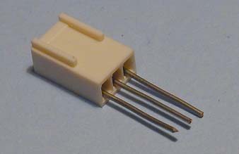 Deska s plošnými spoji byla navržena tak, aby k napájení měniče bylo možno použít některý konektor pro ventilátor na základní desce PC. Konektor slouží zároveň jako držák desky. Použil jsem standardní konektor. Do kontaktů konektoru jsem připájel kousky drátů s průměrem 1 mm. Vývody jsem pak zahnul a zapájel do desky - viz fotografie. Deska se dá použít jako průchozí, není-li žádný konektor pro ventilátor volný.
